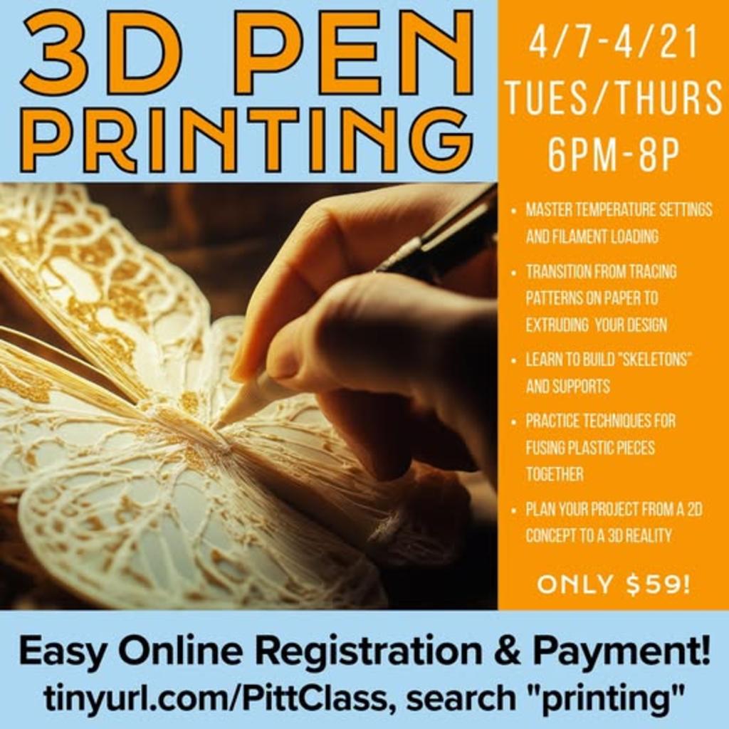 Bring your ideas to life with 3D printing pens! From basic shapes to detailed structures, learn to build your own designs layer by layer in this hands-on workshop. Cost: $59