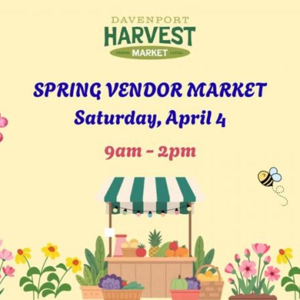 Come help us celebrate the 3rd year of Davenport Harvest Market! Shop 25+ LOCAL vendors selling fresh flowers, sourdough breads, homemade baked goods, candles, honey, seasonal produce, handmade gifts & more! Enjoy delicious coffee from the Luma Coffee trailer and breakfast/lunch items from the Ray Nay food truck!