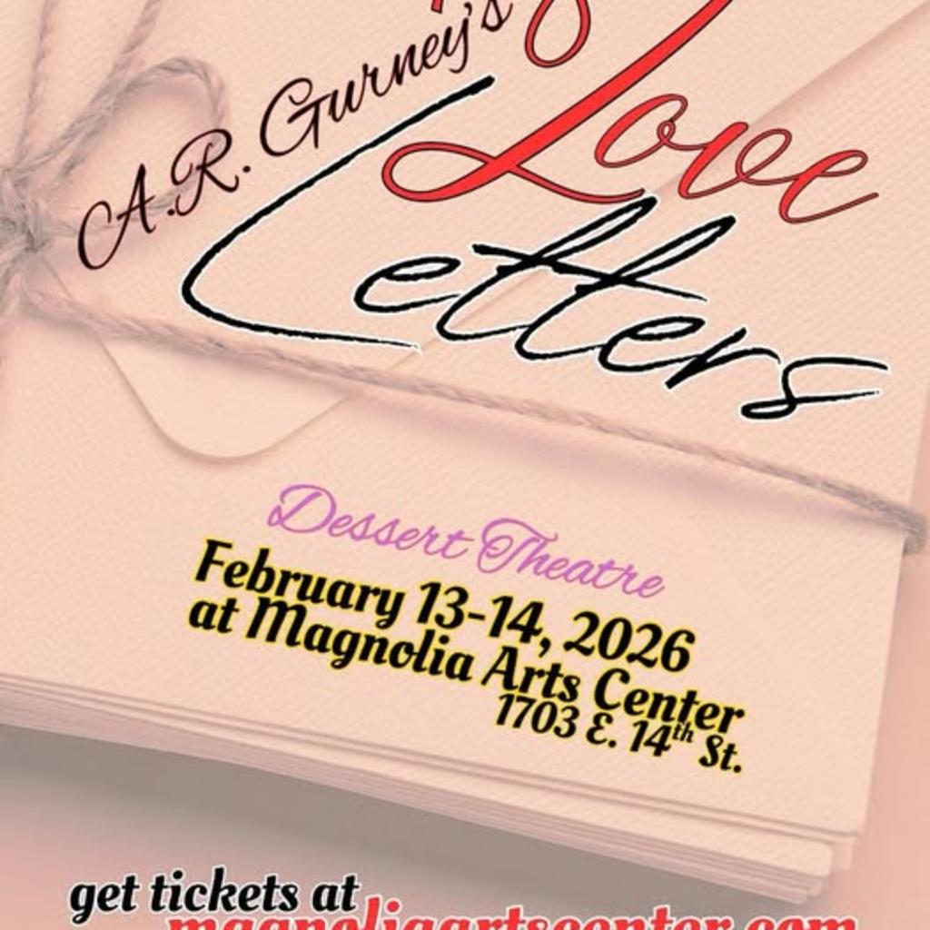 Whether you are a loving couple or just a loving individual, join us on February 13/14 as Magnolia Arts Center offers Love Letters, the Pulitzer Prize nominated play that reveals a deep connection demonstrating the complexities of love, ambition, and personal growth. The play paints a vivid picture of two lives intertwined by the power of the written word. Love Letters keeps the audience sighing for the tenderness of a long romance and laughing from the funny stories that come from that romance. Enjoy a complimentary dessert and a complimentary glass of wine, coffee, or soft drink. (Additional may be purchased). Reservations are required as seating is limited.$30 per couple; $15 individualFriday, February 13 @ 7:30 pmSaturday, February 14 @ 2:00 pmSaturday, February 14 @ 7:30 pm