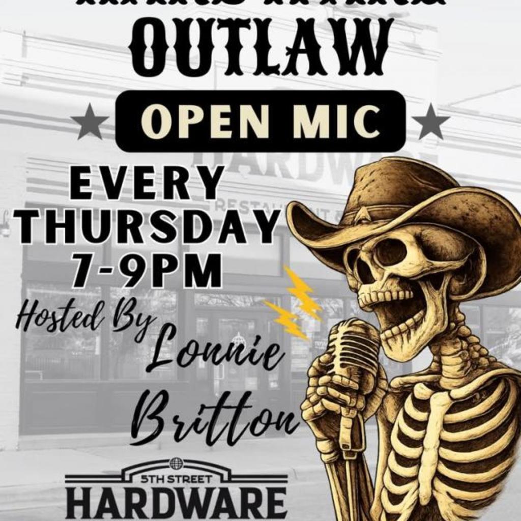Outlaw Open Mic at Hardware ????Join us Thursday the 15th (and every Thursday after) at 5th Street Hardware Restaurant & Taproom for the kickoff of Outlaw Open Mic, hosted by Lonnie Britton.???? 7-9 PM???? Original music • all performers welcome???? Drinks flowing, good vibes guaranteedGrab a seat or grab the mic - see you at Hardware!