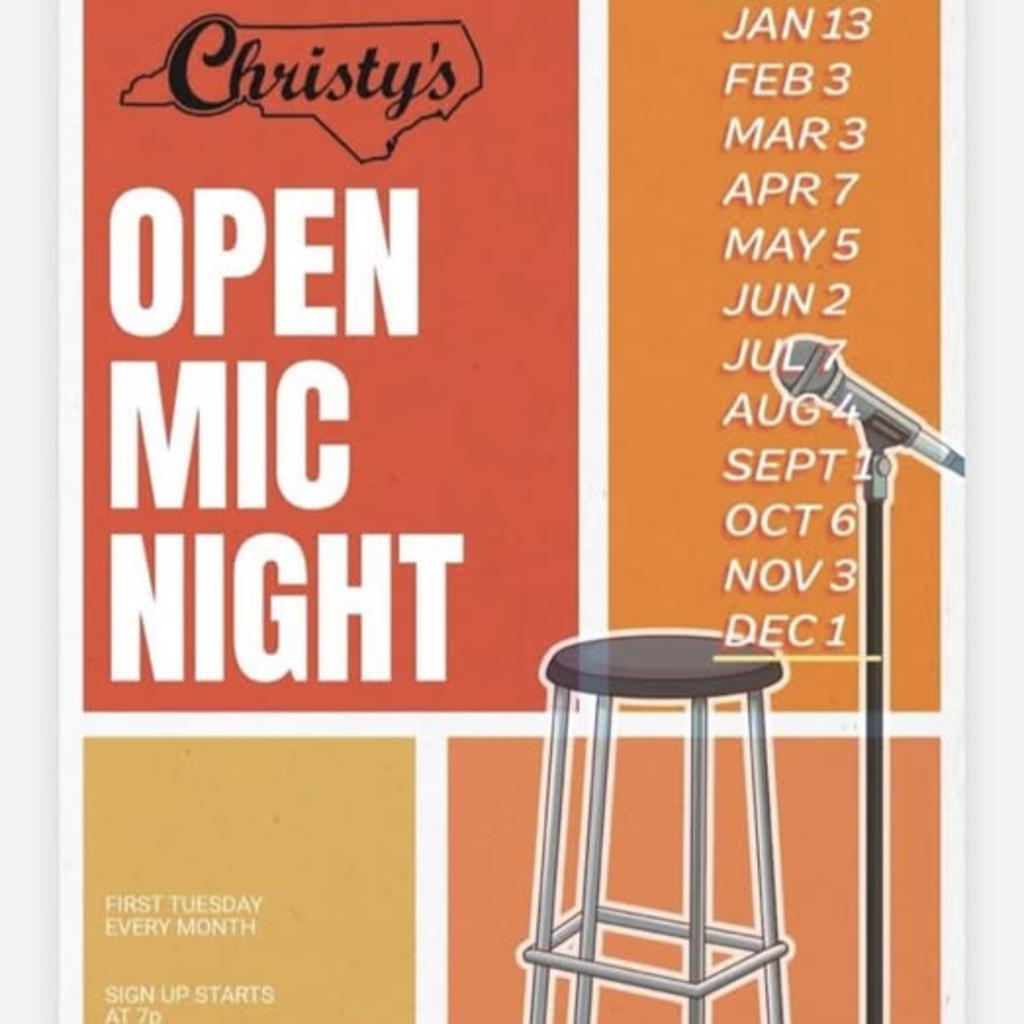 1 of 1 Quincy Jones' Open Mic Nights Location Christy's EuroPub Address 301 S Jarvis St, Greenville, NC 27858 Phone 2527582774 Email Website About Presented By Christy's EuroPub Dates 3/3/2026, 4/7/2026, 5/5/2026, 6/2/2026, 7/7/2026, 8/4/2026, 9/1/2026, 10/6/2026, 11/3/2026, 12/1/2026 Time 7:00 PM to 9:00 PM Join Quincy jones for Open Mic Nights every first Tuesday of the month! Map