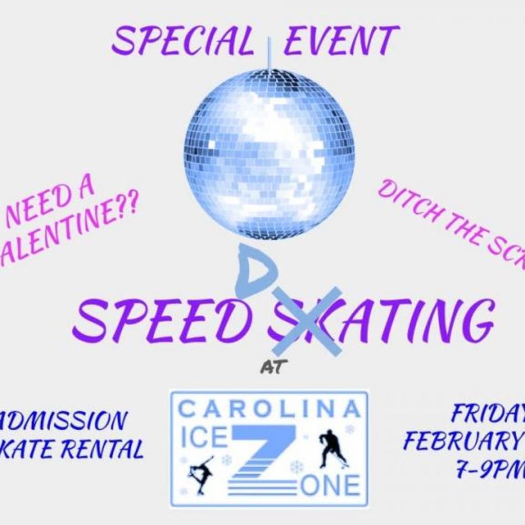 1 of 1 Speed Dating (Ice Skating Style) Location Carolina Ice Zone Address 104 Red Banks Road, Greenville, NC 27858 Phone 2523538888 Email Website About Presented By Carolina Ice Zone Dates February 13, 2026 Time 7:00 PM to 9:00 PM Need a Valentines Date?! We got you !Speed Dating (on the ice!)February 13th7-9pmEvent will happen during public skate!$12 Admission$3 Skate rental Map