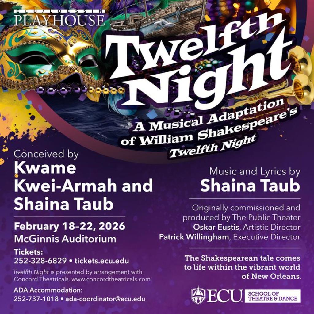 Enjoy the revelry in this musical twist on a classic. Follow Viola, who disguises herself as a man and finds herself in a love triangle. This tale of mistaken identities and hilarious misadventures is brought to life with the rich culture, soulful sounds, and lively spirit of the Big Easy. With the soulful sounds of New Orleans jazz, colorful costumes, and dynamic performances, this production promises to be a feast for the senses.